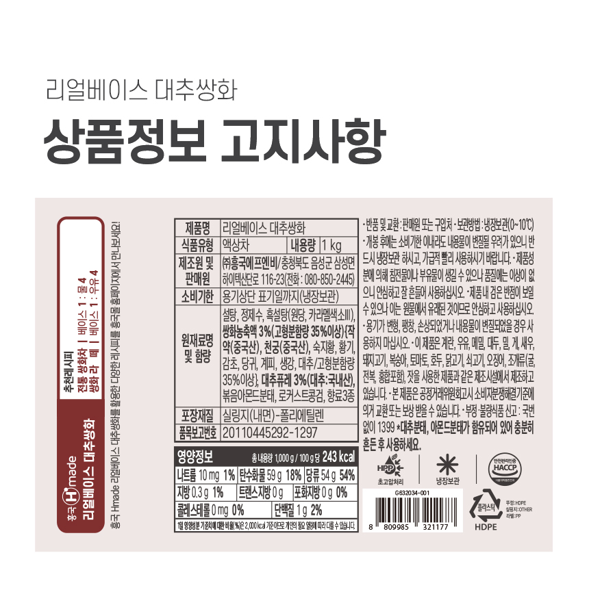 > ¸®¾óº£À̽º ´ëÃß½ÖÈ 1kg